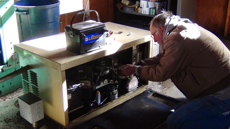 When we moved in here three and a half years ago, the previous residents told us how to turn on the generator. Several times a year we ran the genny whenever we needed more power than the solar panels or batteries could deliver. It always worked but was often not easy to get started. I began to wonder when the generator was last serviced and couldn't find any record of it.